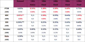 INDICATIVE PERSONAL DEPOSIT RATES APRIL 2016 By idfmarketing| 2016-03-30T14:47:11+01:00 March 30th, 2016| Share This Story FacebookTwitterLinkedinRedditGoogle+TumblrPinterestVkEmail